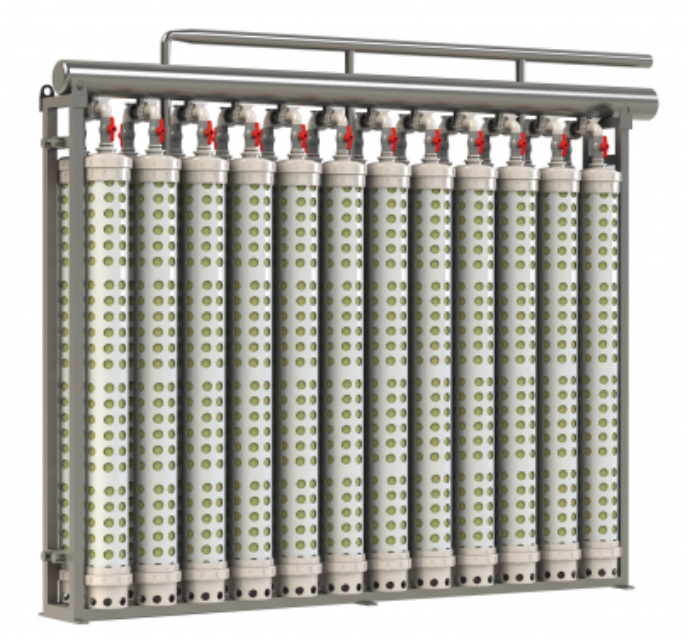 自来水厂浸没式超滤膜集成系统可采用虹吸重力出水方式,与传统负压抽吸式浸没式超滤系统相比,可有效的节省吨水电耗。浸没式膜过滤技术已经在市政自来水、中水回用、海水淡化、工业再生水等多个领域中广泛应用。该系统采用津膜科技自主研发的中空纤维膜丝 ( 获得国家重点新产品证书 ),具有更好的抗污染性、亲水性和高分离精度,且性能稳定,使用寿命长。